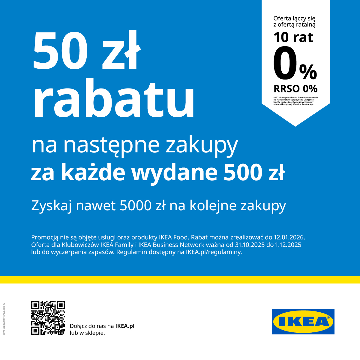Całkiem nowa kuchnia, małe zmiany w sypialni, a może wielka rewolucja w salonie? Cokolwiek planujesz – teraz z IKEA Family zyskujesz 50 zł na kolejne zakupy za każde wydane 500…