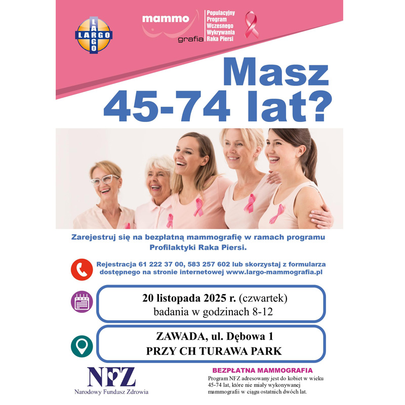 Drogie Klientki, już 20 listopada 2025 r. (czwartek) na terenie naszego centrum będziecie mogły skorzystać z bezpłatnej mammografii w ramach Populacyjnego Programu Wczesnego Wykrywania Raka Piersi. Mammobus pojawi się przy…