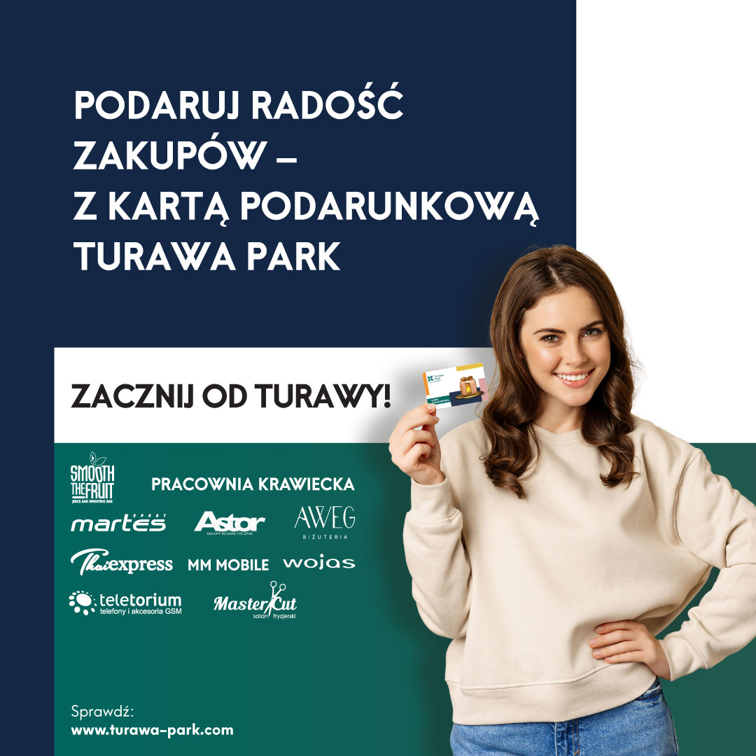 Zakupy w naszym centrum jeszcze przyjemniejsze dzięki Karcie Podarunkowej TURAWA PARK! Taka karta jest doskonałym pomysłem na prezent dla bliskiej osoby lub na upominki dla pracowników. Kartą Podarunkową TURAWA PARK…