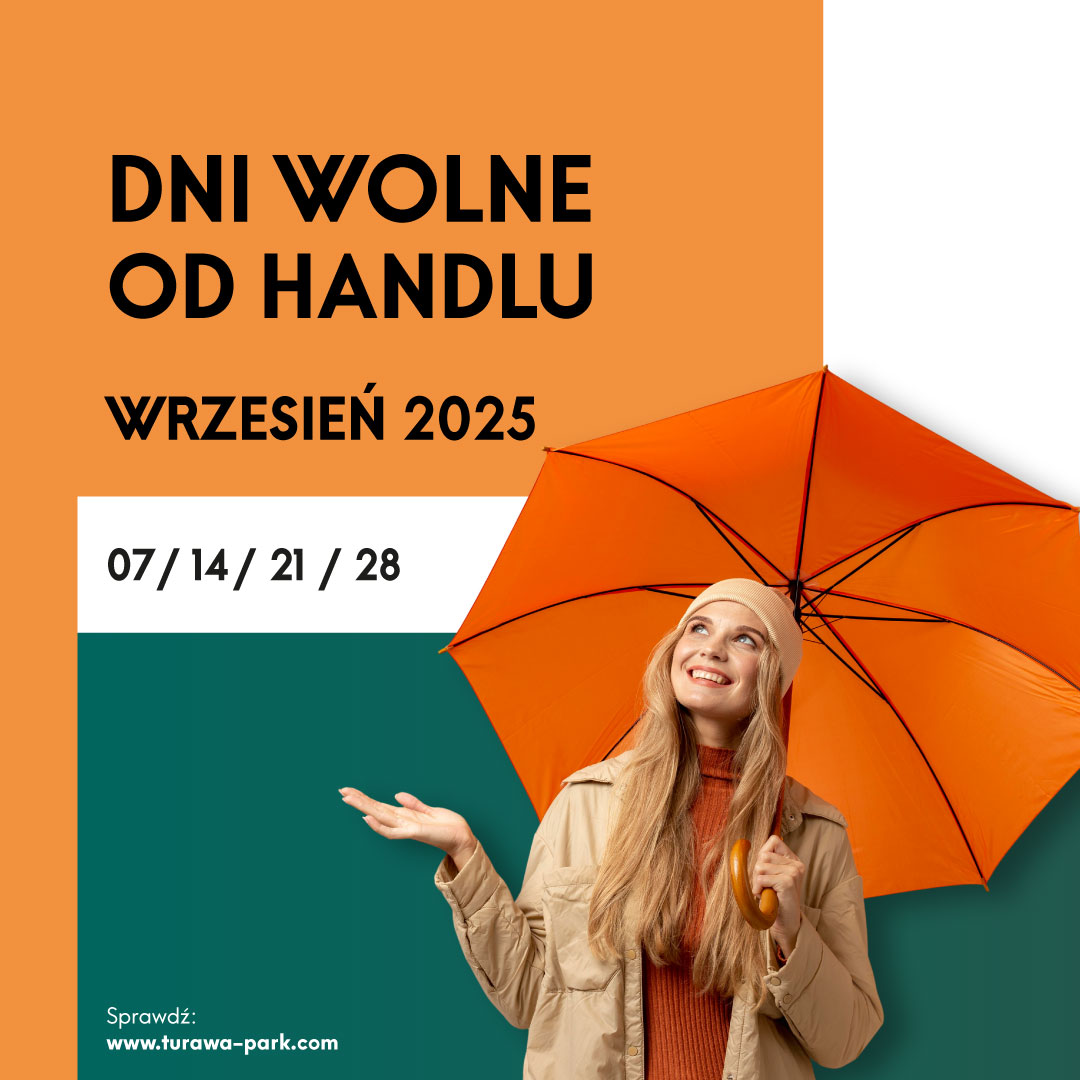 Planujesz zakupy w Turawa Park? Sprawdź, w które dni sklepy będą nieczynne: 3 sierpnia (niedziela) 10 sierpnia (niedziela) 15 sierpnia (czwartek, Święto Wniebowzięcia NMP) 17 sierpnia (niedziela) 24 sierpnia (niedziela)