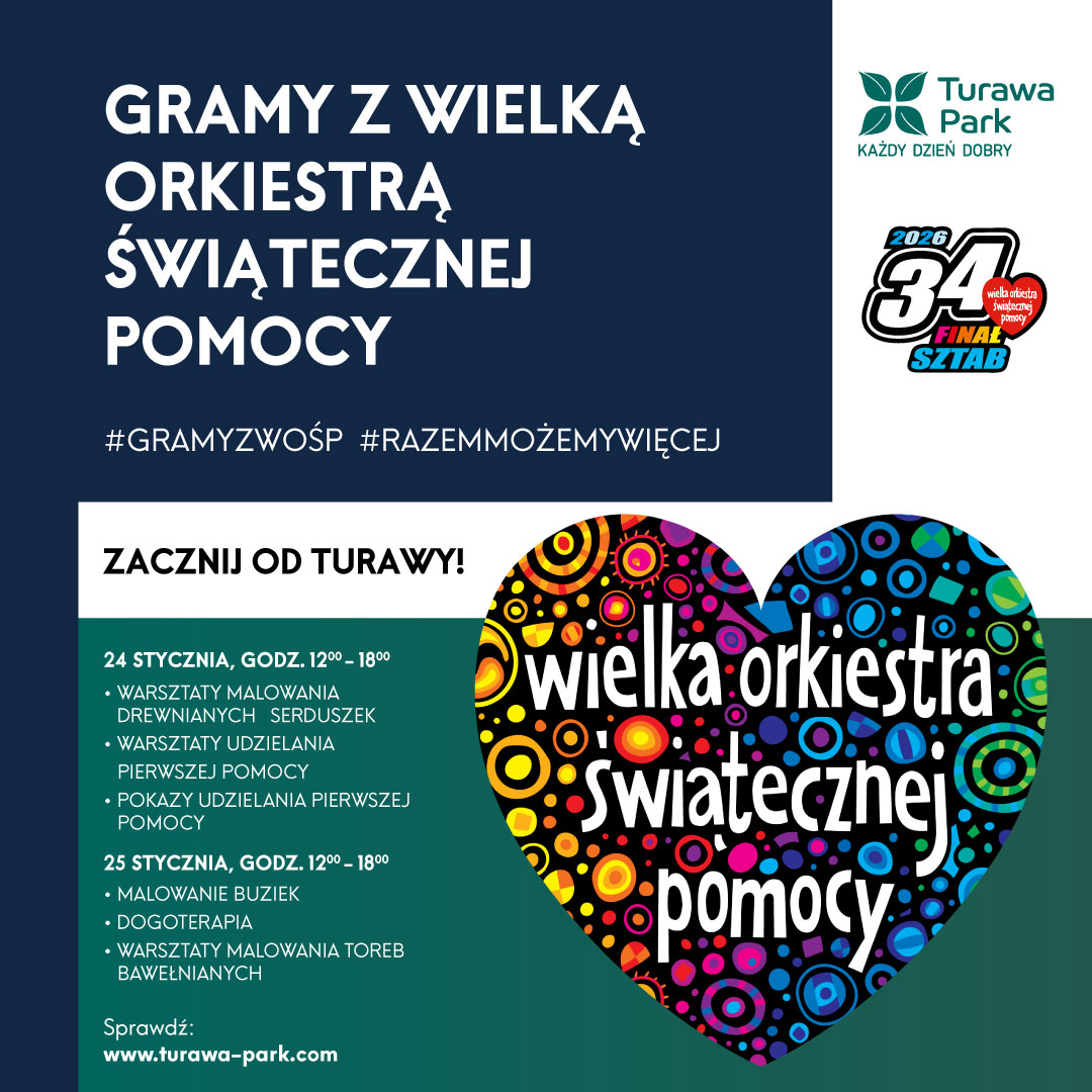 WOŚP jest nam bliski od lat — dlatego także w 2026 roku ponownie gramy razem z Wielką Orkiestrą Świątecznej Pomocy. W dniach 24–25 stycznia 2026 r. zapraszamy do Turawa Park na dwa dni pełne…