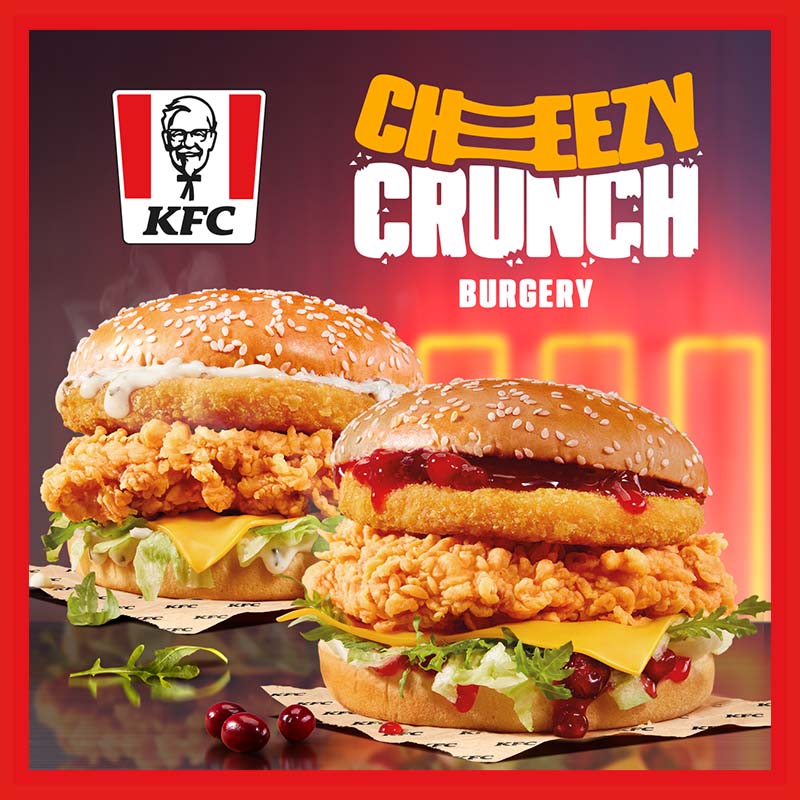 Cheezy Crunch Burgery z aksamitnym, gorącym serem i dwoma sosami do wyboru: żurawinowym lub tatarskim. Wpadaj do KFC, zamów w aplikacji lub stronie internetowej i spróbuj już dziś!