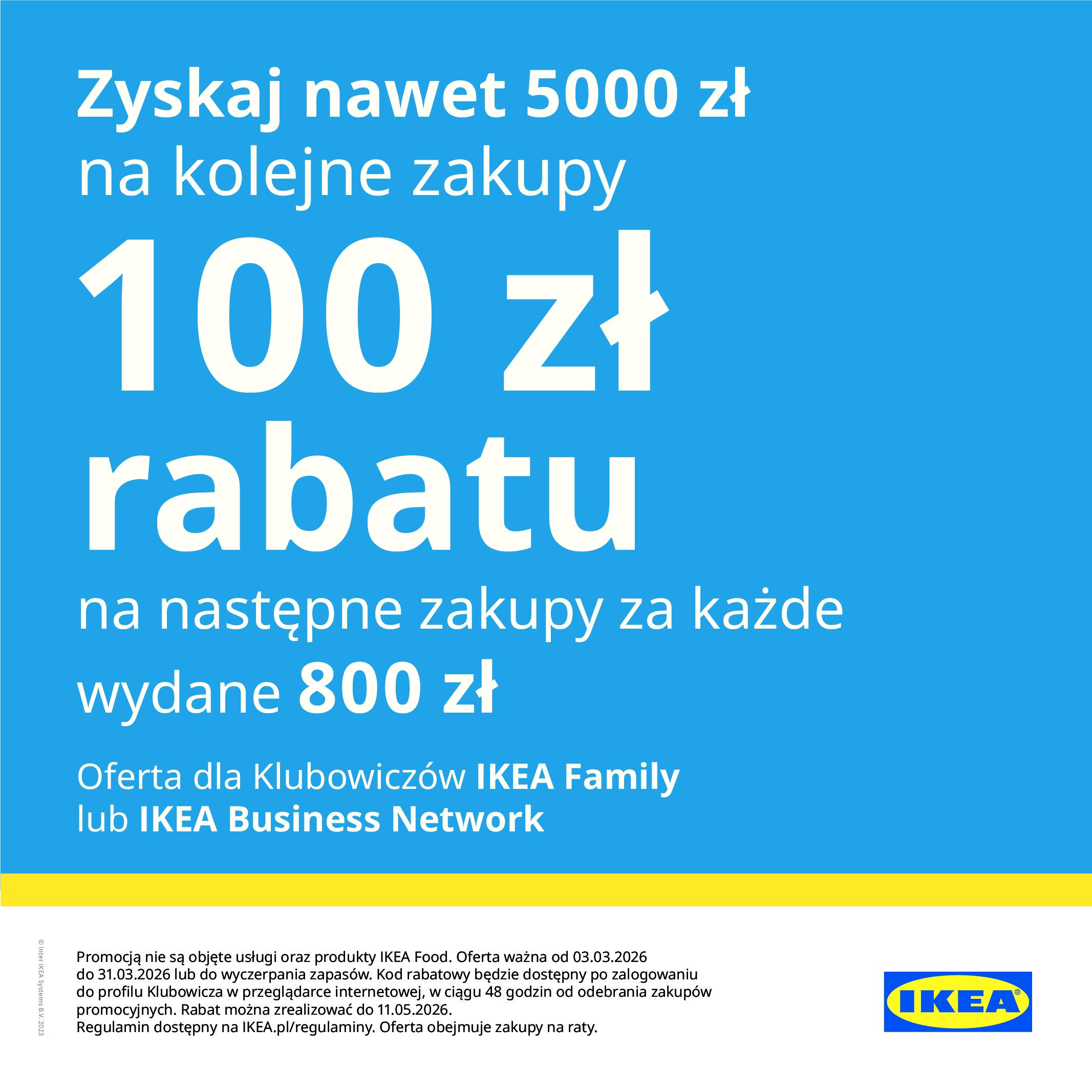 Czy można czuć się bardziej jak w domu? Można, bo teraz z IKEA Family zyskujesz 100 zł na kolejne zakupy za każde wydane 800 zł. Rób zakupy jak chcesz, odbierz…