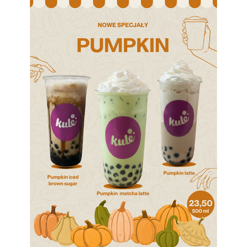 W KULACH właśnie pojawiły się nasze jesienne pumpkinowe nowości, które już zdążyły skraść serca miłośników jesiennego klimatu: Pumpkin Latte, Pumpkin Matcha Latte oraz Pumpkin Iced Brown Sugar!